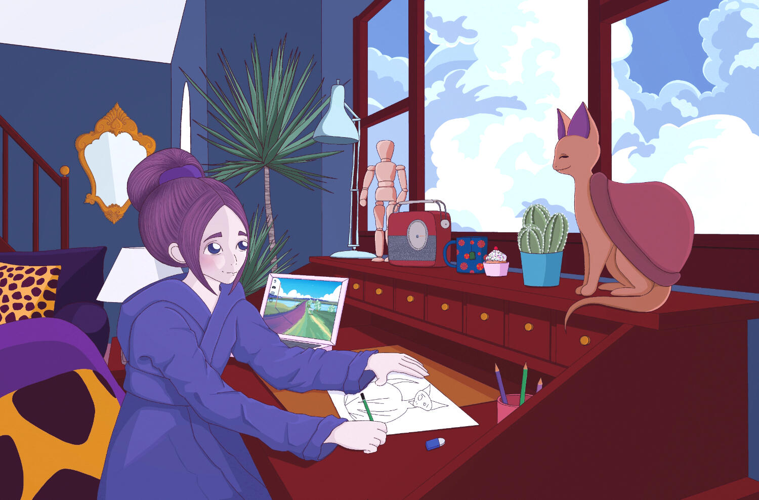 Moi, c’est Amélia, illustratrice freelance, vivant à Nantes. Je dessine les maisons du quotidien dans un univers coloré, poétique et contemplatif. Mon style est simple, mais chaque détail compte.Je m’intéresse à ce qui semble banal mais qui, observé à la loupe du cœur, devient une énigme : une plante qui fait sa vie dans la craquelure d’un mur sans demander l’avis de personne, un rideau qui flotte comme s’il dansait joyeusement avec un fantôme, un rayon de soleil qui choisit toujours la même chaise pour se reposer.Je cherche du bout de mon stylet l’endroit où l’intérieur de ces maisons déborde doucement sur le monde.